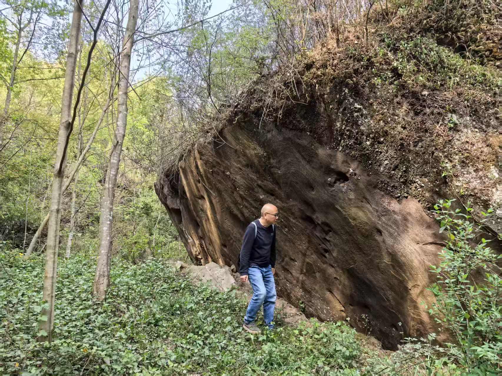 于是,傅玉斌与普查队员们就循着大爷的记忆,在茶园沟村附近的山林间寻找。可是因为年代久远,大爷早已记不清具体的位置,只能凭着童年模糊的印象行走在荆棘密布、杂乱丛生的深山中,有些地方几乎没有可以下脚的位置,傅玉斌与同伴们手持伐木刀,才在林中劈开一条道路。